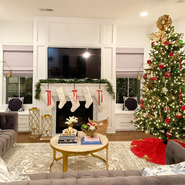 Our Christmas tree is from Grandinroad, but it’s no longer available. I did find an almost identical one here and the price is really good!! And here is the pre-lit cedar garland that is on our mantel.