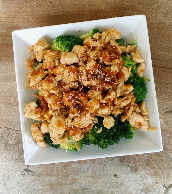 - To serve, spoon chicken over a bed of broccoli and then spoon on additional sauce. Top with sesame seeds, if desired.