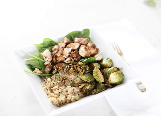Balsamic Brussels Sprouts and Chicken Quinoa Bowls