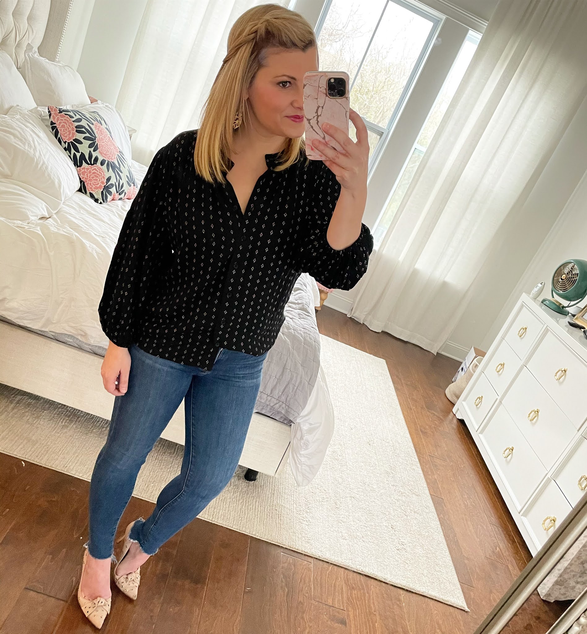 You are going to want this blouse in every color and pattern! Seriously, it’s lightweight, ultra soft, and the best fit. For sizing reference I am wearing it in the small.
