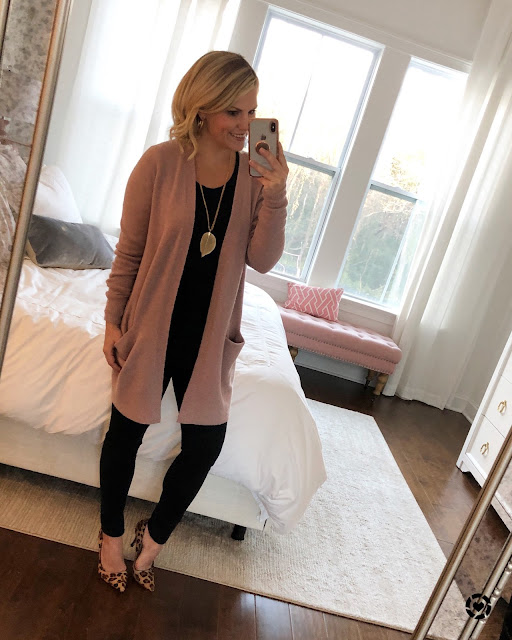 Cardigan // Scoop Neck Long Sleeve Tee // Leaf Necklace (only $9)