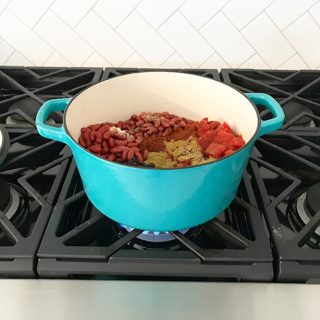 I had a lot of requests to share this taco chili recipe that I made earlier this week. It was seriously one of the best (and easiest) that I’ve ever cooked. I did, however, forget to grab a can of corn at the store so our chili is missing that, but it was still really good without it.