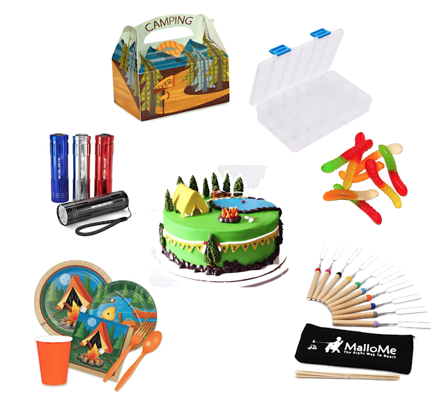 We are planning to set up a big tent in the backyard, roast S’mores by the fire, and play glow in the dark Capture the Flag! We’ve all been dying to play this game since Carson got it for Christmas! And y’all know how much I love to party plan, so I had to add in a few fun things even if it was just some party favors and a cool camping cake.