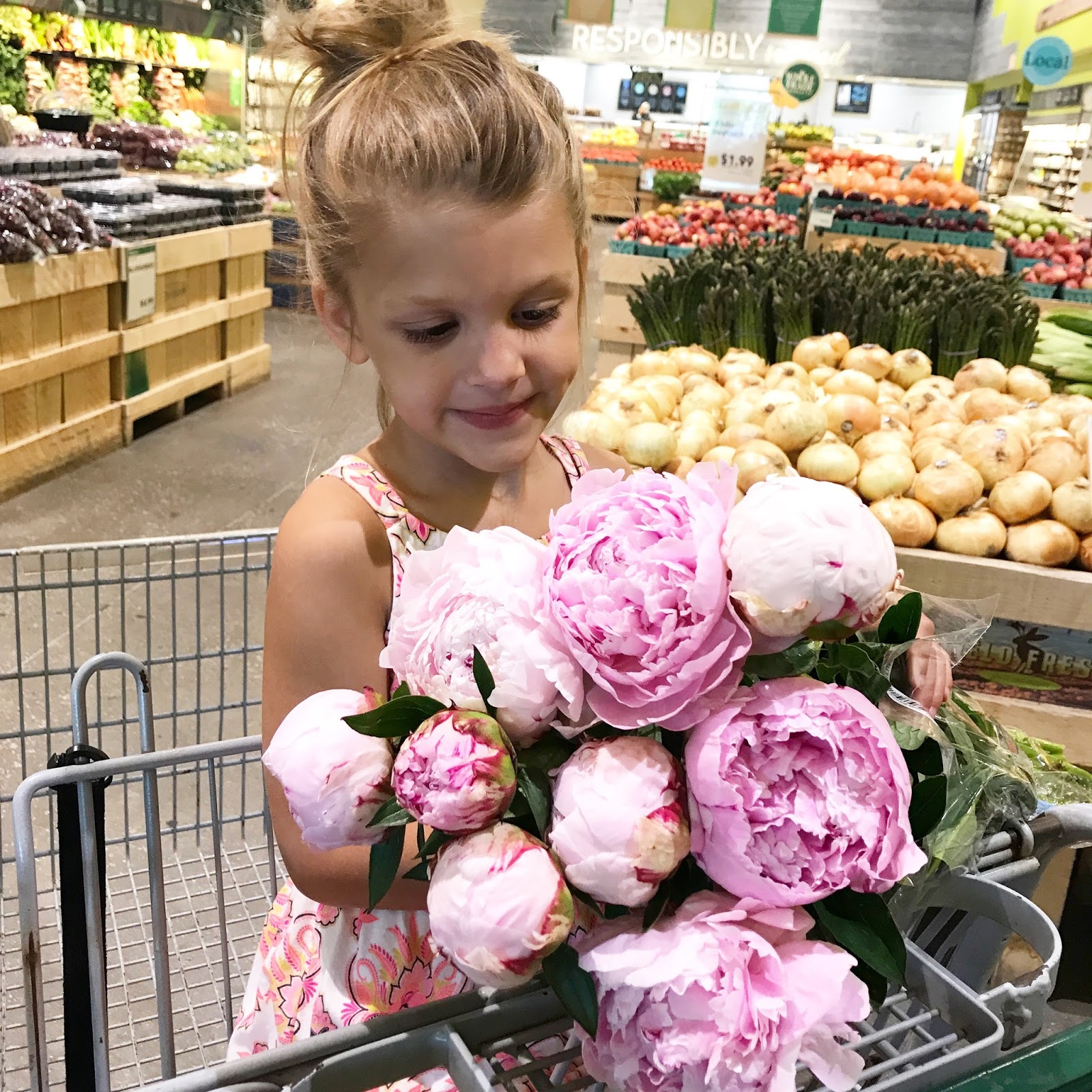 Picking up a few groceries and our favorite flowers.