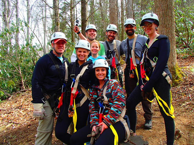 I can’t believe that I haven’t shared any pictures from our trip to the mountains two weeks ago. We had the best time ever with some of our oldest friends, and we stayed up WAY TOO LATE both nights. But it was a blast, and we even made it zip lining early Saturday. It was really fun, and our two guides were awesome!