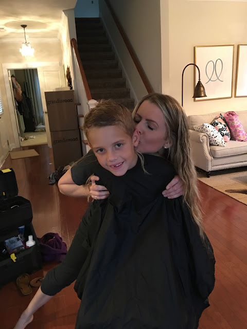 My little man had his school pictures yesterday and he was way overdue for a haircut!! So, my awesome multi-talented girlfriend came over and gave him a nice little trim.