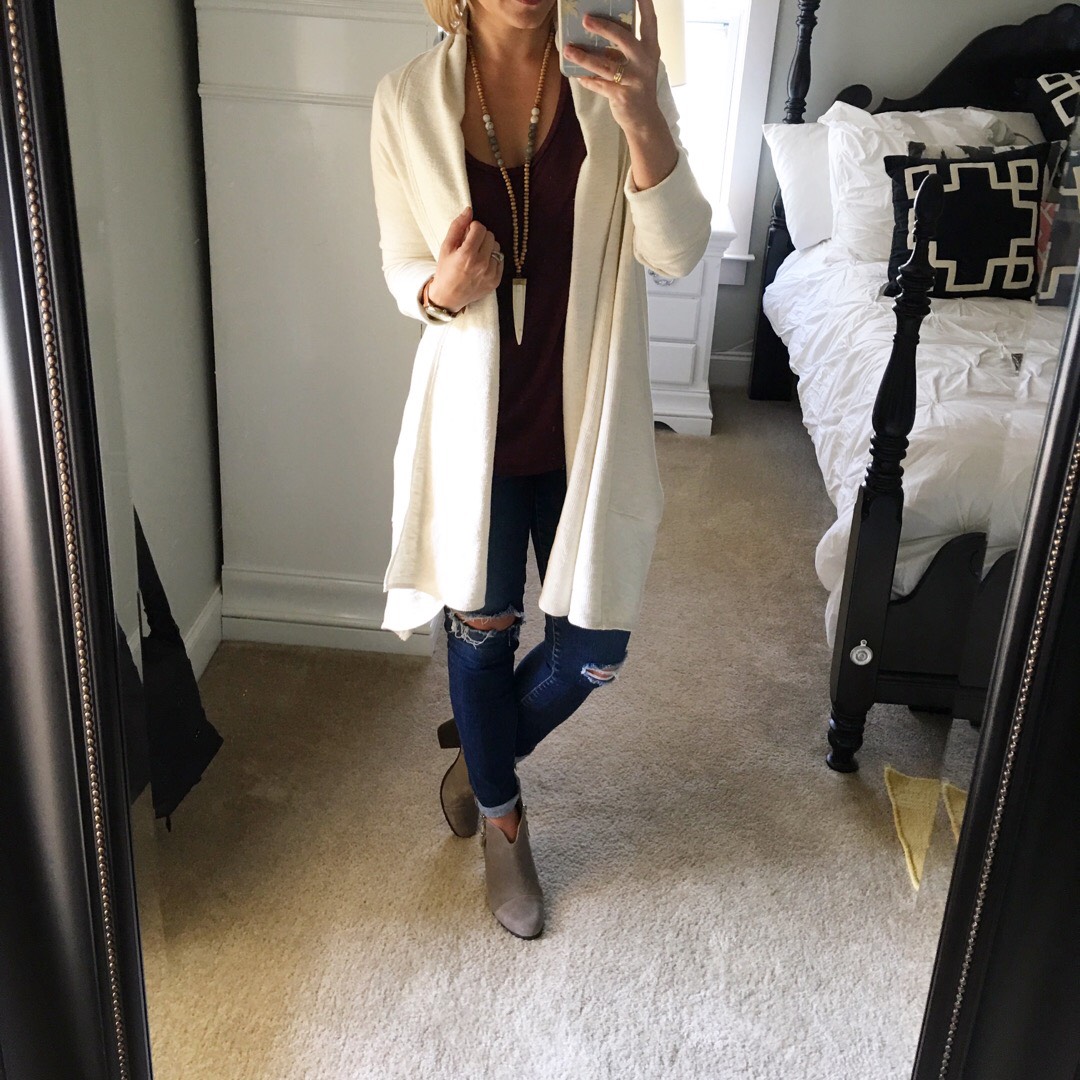 I can already tell that distressed jeans and oversized cardigans are going to be my go-to this fall. Now, bring on the cool weather and everything pumpkin, please 😉