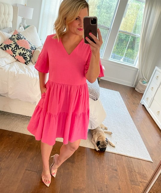 I will absolutely be ordering this dress in more colors! I love everything about it…from the material, the pockets, and the adorable sleeves! For sizing reference, it does run big and I’m wearing a small, but could’ve sized down to the xs for a more tailored fit. Added bonus, it’s on special right now for $28!!