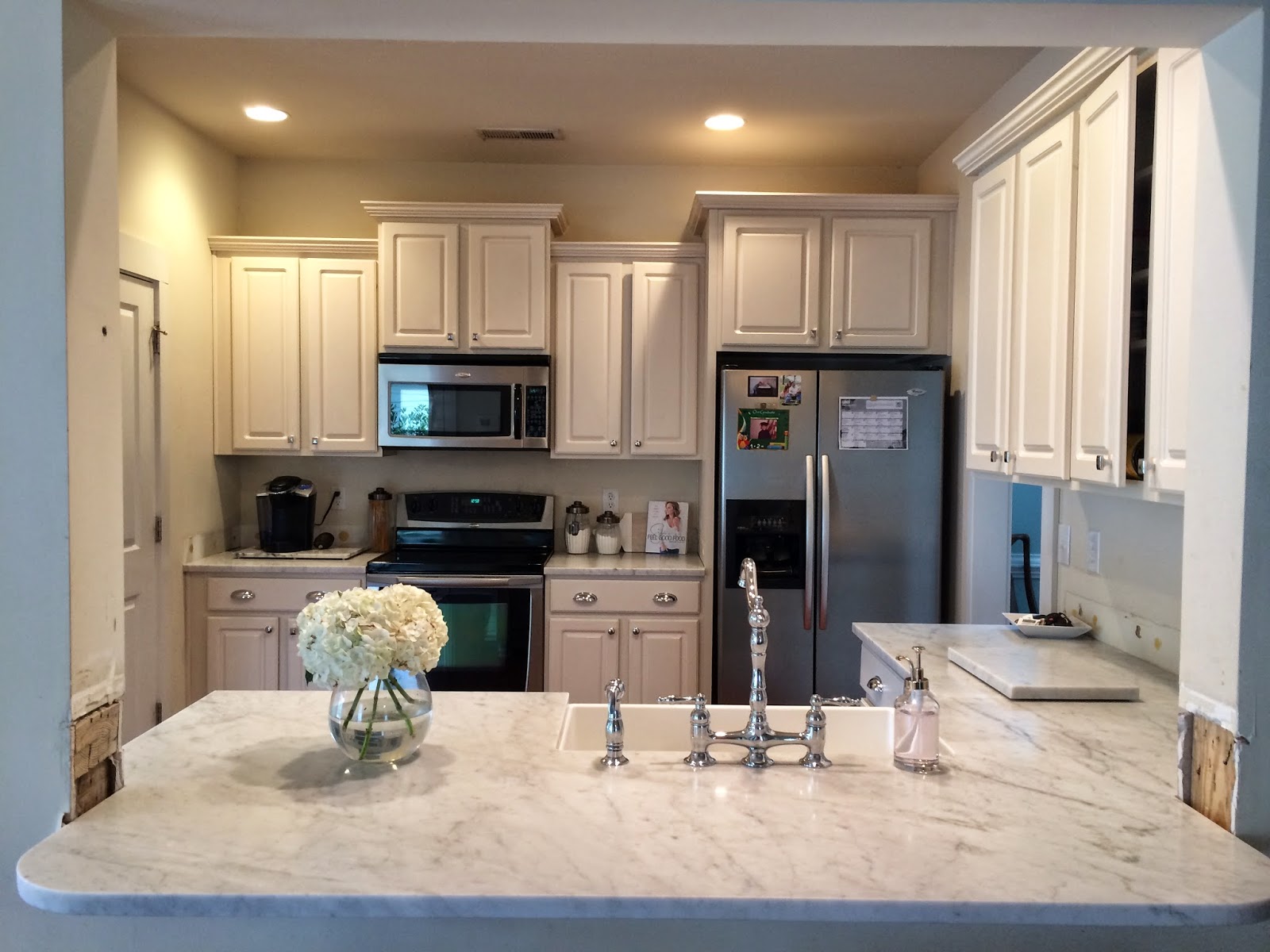The kitchen is coming along!! The backsplash is being installed today and next week the cabinets are being painted (along with some touchup work…AKA – all the exposed wood you see). I am struggling with whether or not we should paint the cabinets because they actually look lighter with the marble and I wasn’t expecting that to be the case. They are the lightest off-white right now, but I think a bright high gloss white will make them pop even more! Odds are they will get painted. What’s y’alls thoughts on this…would you paint them or leave them? I can’t wait to have it all finished and show you guys a completed kitchen.