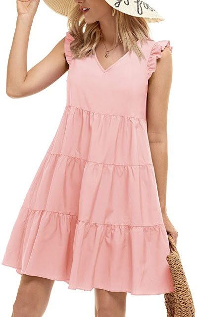This dress comes in so many different colors and patterns. They also make a jumpsuit version in every pattern as well. They both look lightweight / comfy and perfect for the summer.