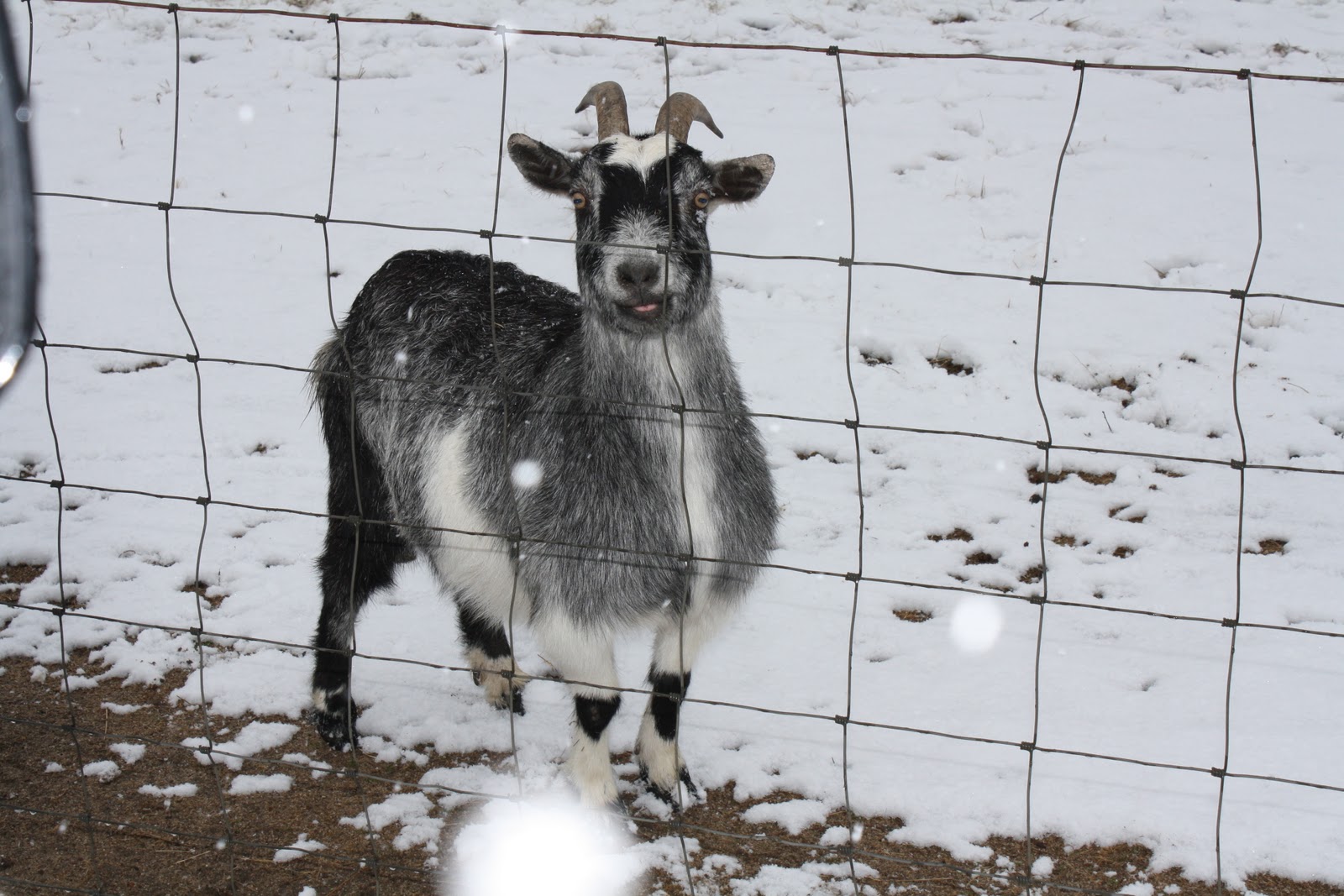 Oreo the goat, and yes they really name their goats, and his name is really Oreo 🙂 I love that they have names, so funny. Carson just loved seeing the goats and donkeys in the snow, he couldn’t get enough of it.