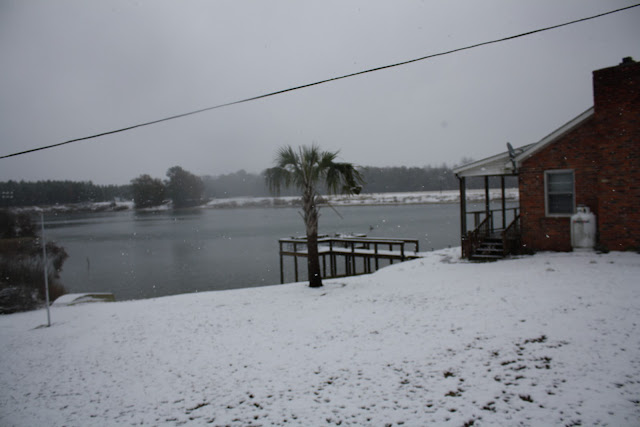 Another view of the beautiful, huge, snow filled farm. You see that little cabin, yes that is where the hubs and I usually stay while Mimi and Papa keep the little one. It is just a few hundred yards from their house so we take the golf cart, turn on the fire and have us a nice romantic evening all alone in the country. But last night after we got down there and unpacked, I saw a freaking dead mouse under the bed! I freaked and told Todd I couldn’t do it, I could not get in the bed, because I would be thinking mice were on me all night ha! So back to the in laws we went!