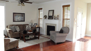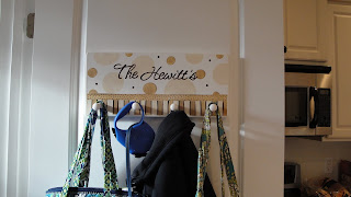 🙁 Bummer ). So Todd says he will fill in for them this Saturday 🙂 I will let you know how that goes!!! Anyway here are a few new things that I have done to the house…….. New wood floors, can I get a Amen sista I love these things, new curtains in Carsons playroom and bathroom, chair recovered, table runner, to match my chairs in the dinning room and this cute little coat rack!!