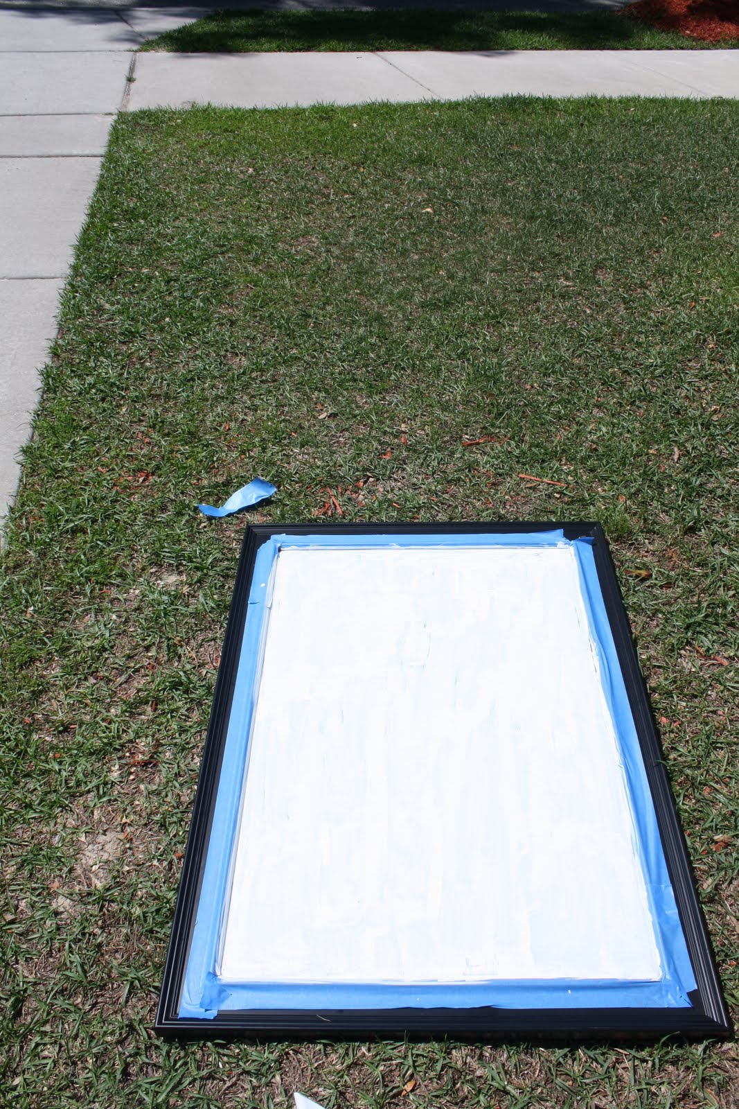I have always wanted to have a chalkboard in my kitchen, I just didn’t want to pay Pottery Barns $150.00 for it! So I made my own. I just love the way it turned out! I got the mirror on sale for 16.95!!! I know crazy! So I had to by a special primer and chalkboard paint which totaled $35.00. So my entire total was $51.95, and still have lots of primer and paint left. I also found this frame for $10.00, it was this ugly light wood color. So I primed that sucker and painted away. I don’t think it looks to shabby for $10.00, and it holds our feet picture at the beach perfectly 🙂