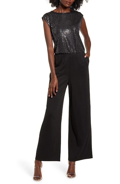 Okay, so y’all know I love a good jumpsuit, but this one is killer!  I love that it looks like two separate pieces and the sequin top is so fun!