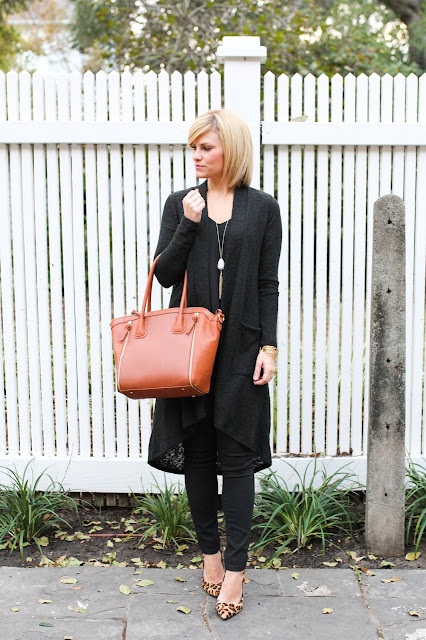 I just love the polished look of all black, but sometimes it can be a bit too harsh by itself. I decided to pair this outfit with a little pop of neutral and leopard. When in doubt, nudes and leopard are always a good idea 🙂