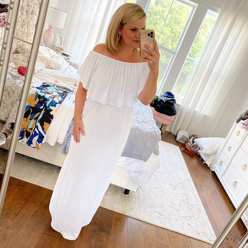 I’ve ordered several other shorter dresses from this brand and the quality has always been great so I knew I would be golden there, but I’ve got to say, I love the print and the fit of this maxi a little bit more than the shorter ones. It’s another one that’s under $30. It runs tts and I’m wearing a medium.