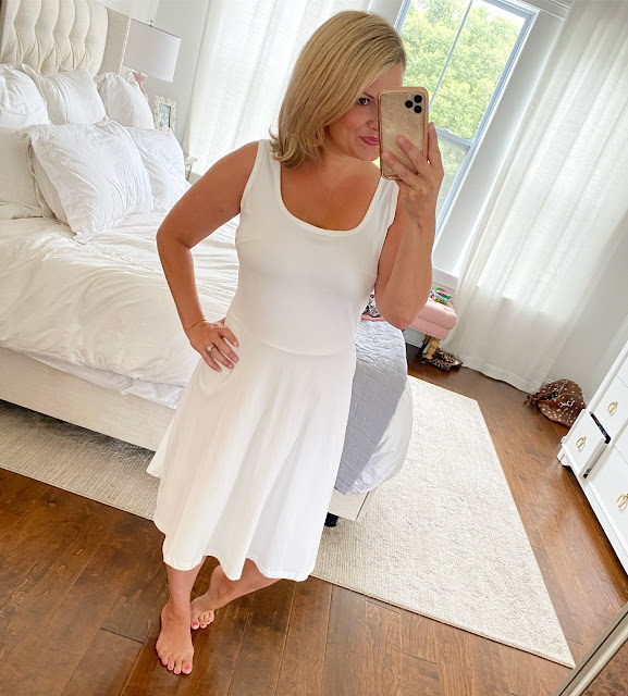 This dress is such a good one, and it’s perfect for now and also into the cooler fall. It would look so cute paired with a jean jacket and booties. For sizing reference it runs large and I am wearing it in the small.
