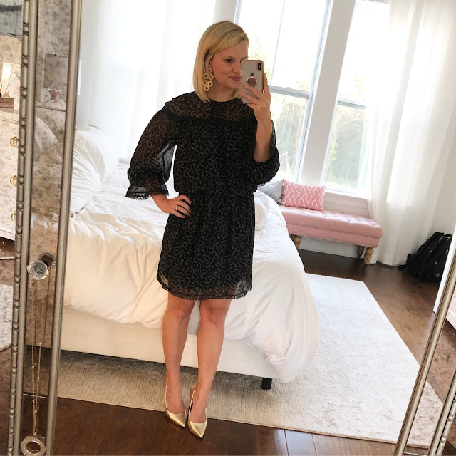 V-Neck Bell Sleeve Shift Dress // Pumps (look for less here)