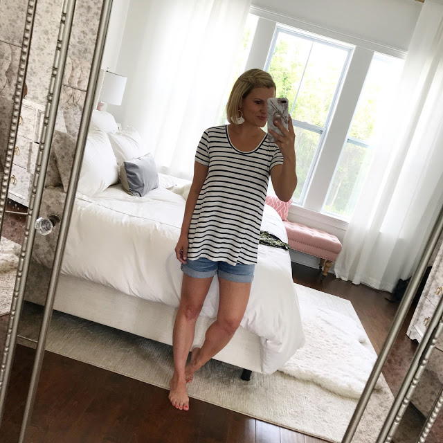 Stripe Swing Tee (comes in a 2 pack for $24) // Shorts // Earrings