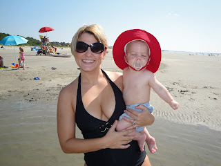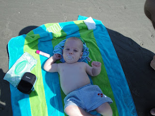 Have I mentioned I love weekends when we are able to stay home and enjoy home! Well I do, very much so. Friday night Todd and I went on our first date with Carson 🙂 He did really good, he sat in his highchair all by himself and ate his whole jar of baby food! We ate at a place called the Wild Olive a really yummy Italian restaurant in Johns Island. It is one of those hole in the wall places, but so delicious. After dinner, Todd and I put little man to bed and we did the same. Saturday we took our first beach trip with little man YAY!!! He did so good and we were so proud of him. He really liked the water:) We sat in what I like to call the mud puddles most of the time. The mud puddles are these really big holes full of water all over the beach. It is perfect if you have babies or small children. After about 30min though he had enough, it was nap time. We attempted to let him nap in his tent on the beach, but he wasn’t having it ha! After the beach we came home and all of us took a three hour nap. Sunday we went to church, came home ate some lunch and starting prepping the food for a cookout we were having with some of the neighbors. We had a great time, there is nothing better than having good neighbors to hang out with on Sundays!