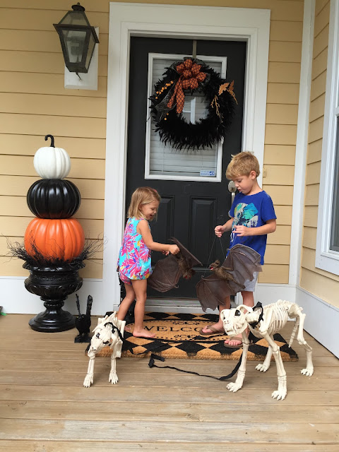 // The awesome people at Grandinroad emailed me last week saying they remembered how much Carson and Taylor loved Halloween, and to check out their Halloween Haven section! The kids and I spent almost an hour looking at all the cool spooky decorations. In the end, we decided on this scene and this scene. And don’t you know when all those boxes arrived we had to open them! Then Carson wanted to set it up and spook daddy when he came home from work 🙂 And don’t worry guys, I didn’t leave it up, it’s in the garage waiting until October 😉 Or maybe the end of September if we just can’t wait!