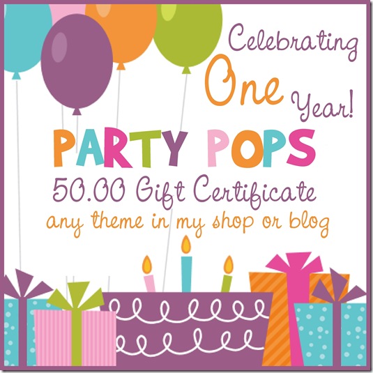 Go check it out! The Awesome Sherry from http://partypops.blogspot.com/ is hosting a $50.00 Giveaway. Not only is she talented, but is so sweet to work with!! She made Carsons first birthday a dream come true for me!!!!