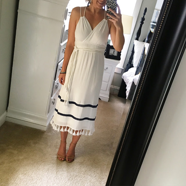 This dress was just re-stocked at Revolve!! If you saw this dress and liked it, I would grab it now as it is completely sold out at Nordstrom and Shopbop! Revolve offers super fast, free shipping and free returns! Also, for sizing reference, this dress runs tts and I am wearing the xs.