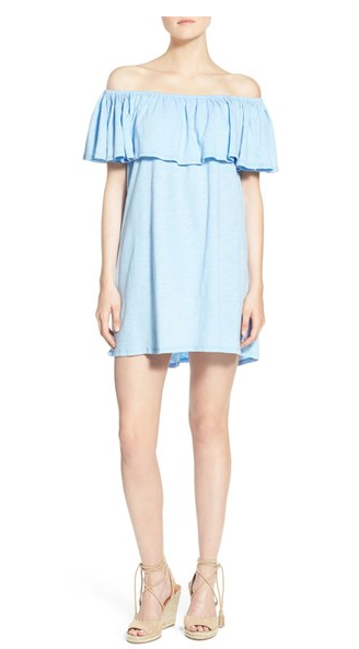 Also, this off the shoulder dress, which I have already worn four times now, was just re-stocked in this gorgeous baby blue color!