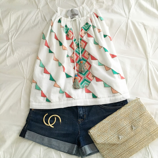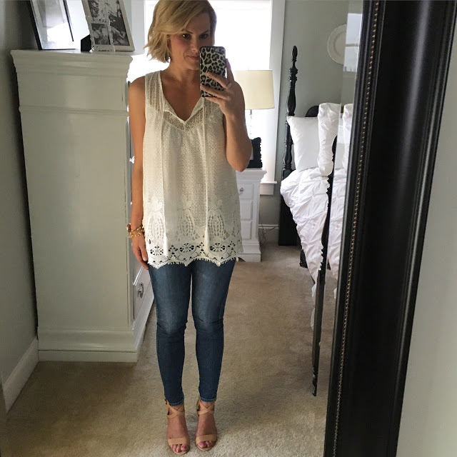 //This this blouse that I wore here and here was just marked down 40% off!!! There are not many sizes left in the white, but the coral (which is just as beautiful) is available in all sizes! This blouse also runs tts.