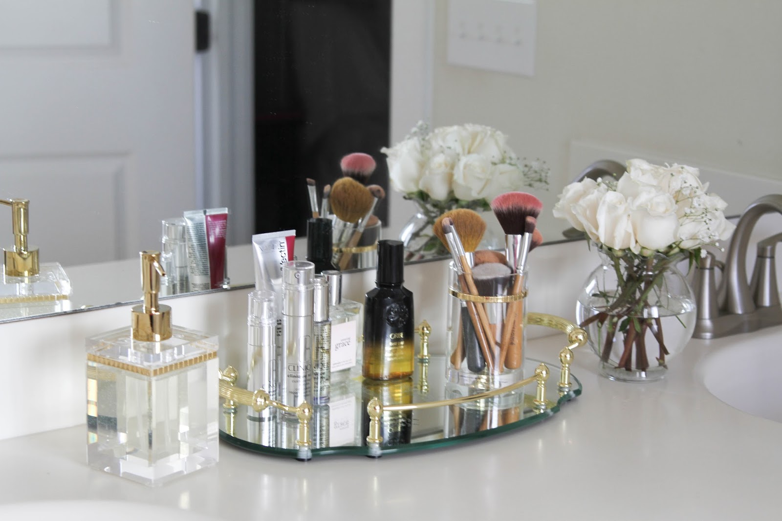 And now for possibly my favorite part, the Belmont Trays and the Mike and Ally countertop accessories.  Both of these are seriously swoon worthy and make me smile everytime I walk into our bathroom!