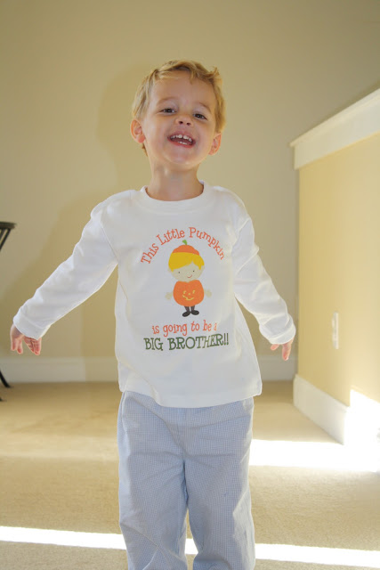 So exciting!!! Congrats!!!!!! Love the big brother shirt, super cute! Hope your feeling better!!!