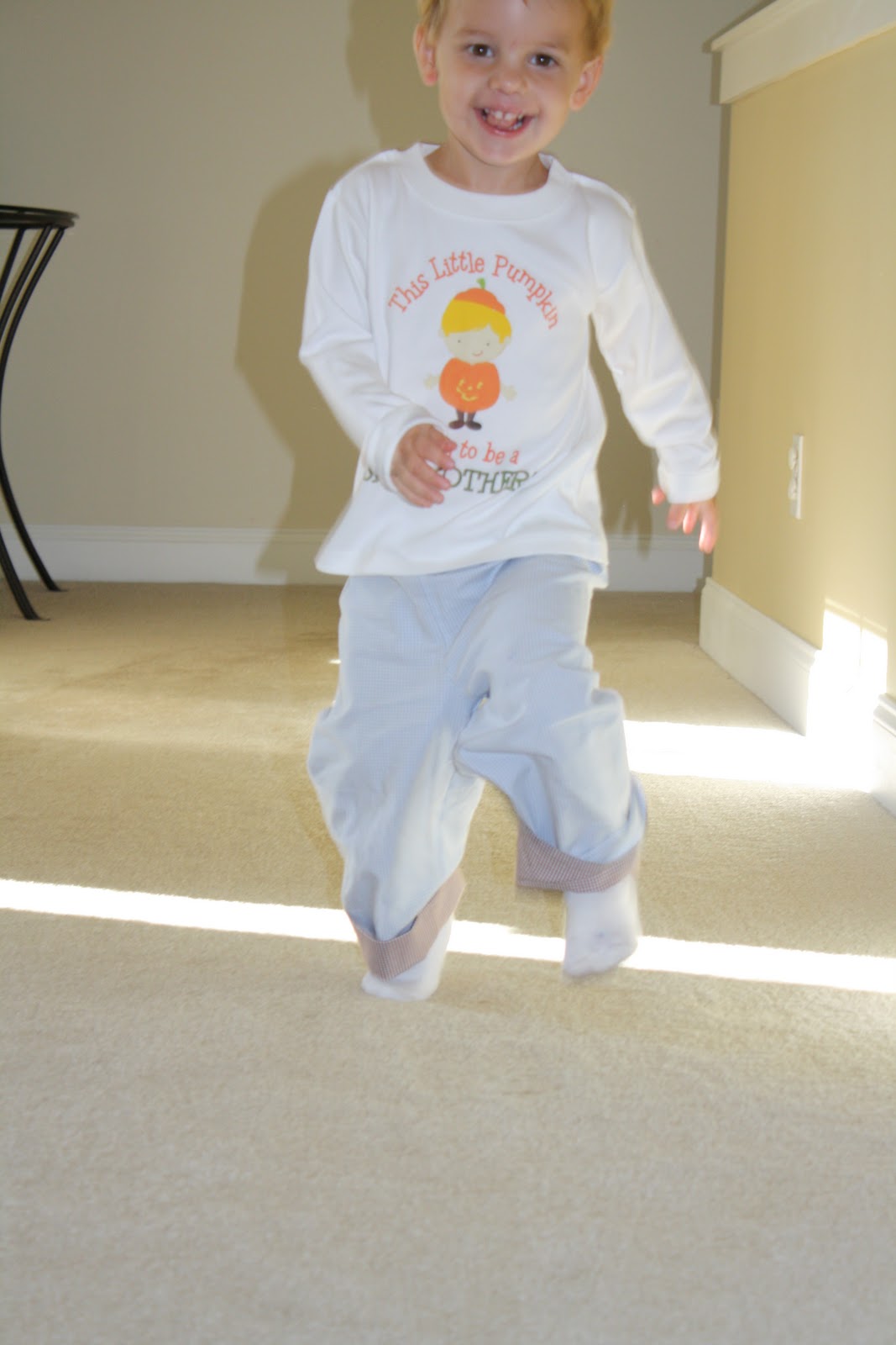 Congrats! That is such wonderful news and what a precious way to announce it! Love Carson's shirt!
