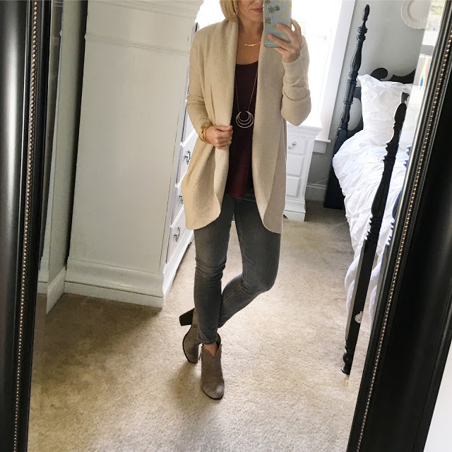 Circle Cardigan // Long Sleeve Tee // Necklace // Jeans // Booties