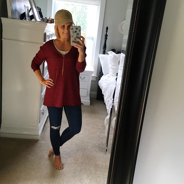 V-neck Sweater (only $39) // Tank // Necklace // Jeans // Baseball Cap