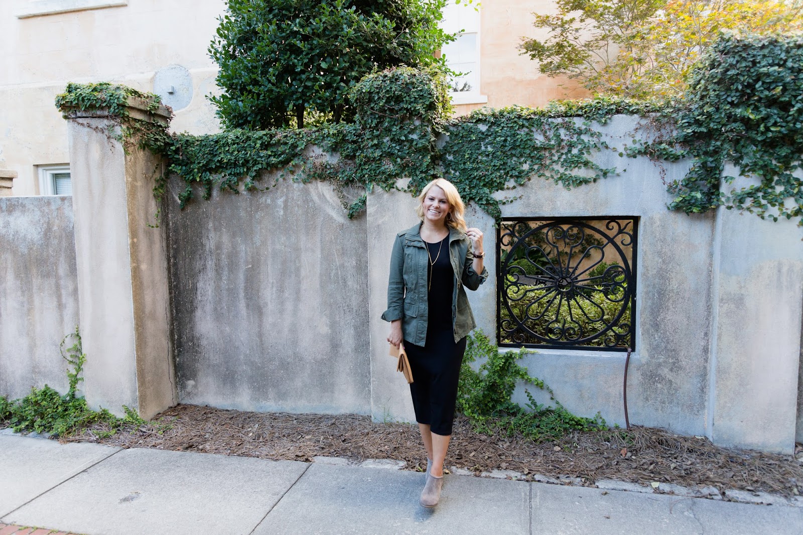 And the last look with a structured military jacket and booties is perfect for fall.