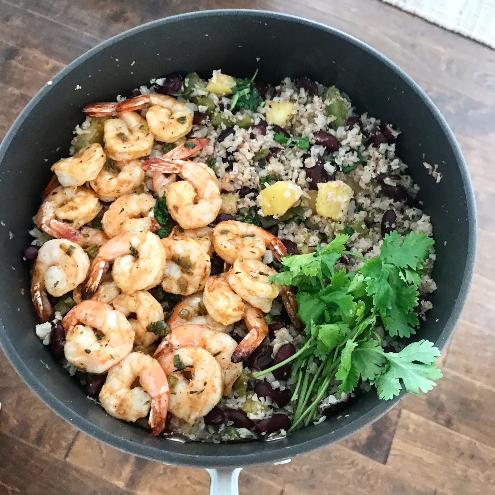 - To make the cauliflower rice, heat a large skillet over medium heat and drizzle in olive oil. Add bell pepper, jalapeño and pineapple and sauté until tender, about 3 to 5 minutes. Then add cauliflower rice and stir in garlic powder, salt/pepper, cinnamon, orange juice. Cook for about 5 minutes then add the kidney beans, cooking an additional 2 minutes. Remove from heat and mix in chopped cilantro.