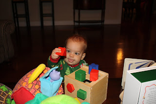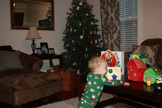 Happy First Christmas sweet baby boy! You have been such a fun baby, your daddy I could not imagine life without you! You were so funny this morning looking at all your toys, you squealed with excitement when you saw what Santa had brought you! (it was priceless) If I can figure out how to upload a video I will! PS how funny is this face he is making??