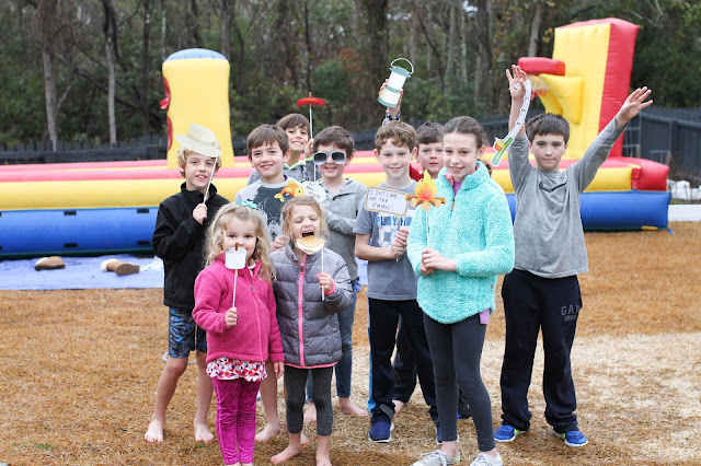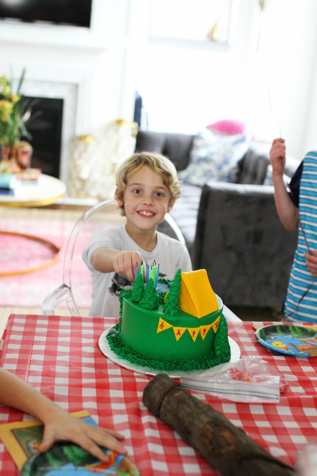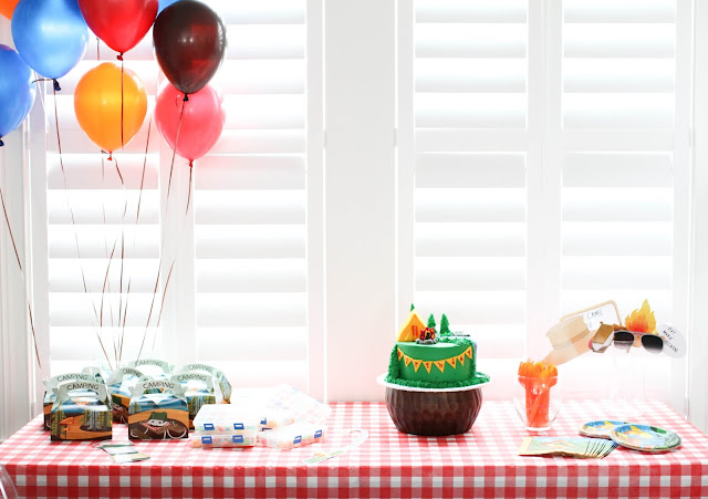 If you’ve been reading here for a while you already know that I love to plan birthday parties! But the older my kids get, the harder it becomes to pull off the “cool” party while still letting my creative juices flow, but this year Carson said he wanted to have a sleepover with a few of his friends so I suggested they do it out back in a big tent and he could have a “campout sleepover”. Luckily, he thought my idea was awesome and this is how the “campout” theme came about!