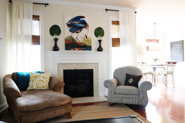 I like option 1 the best! I also love the picture above your fireplace!