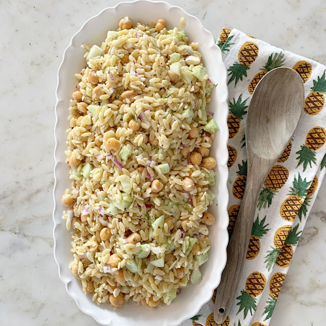 I actually made this orzo pasta salad last night for dinner and it was absolutely delicious. I’ve had such a strong craving for salads, cold pasta salads, and fruits this pregnancy so I was really excited about making this one. And best part is, it’s ever better the next day after the dressing has time to sit and really soak in the orzo and vegetables.