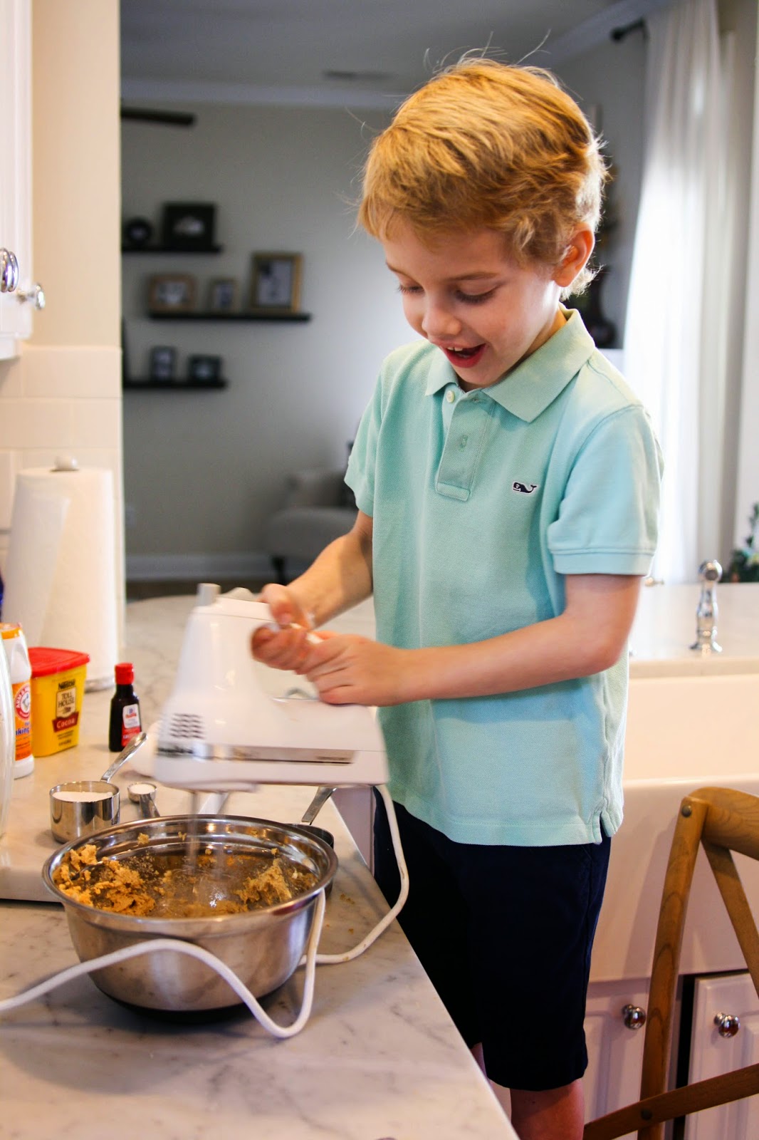 He LOVES mixing the batter and turning the speed up really high! Ha, maybe that’s why our consistency was off 😉