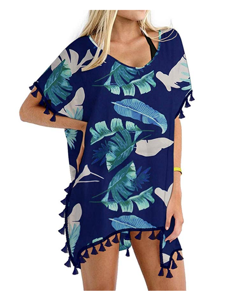 Love the print on this leaf print tassel cover up, plus, the fit of this style looks good on all body types as well.
