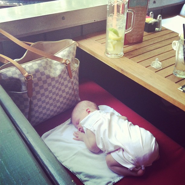 Ha – I love this. Your sweet daughter laying in the booth with you is just about the cutest picture ever!