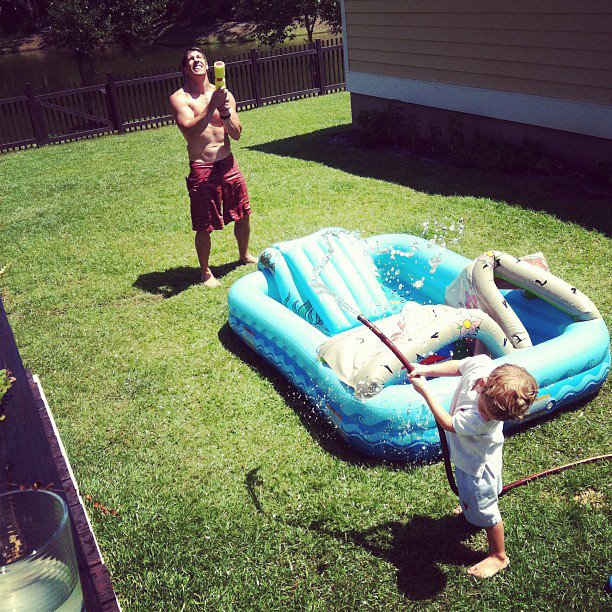 After lunch we came home and “we” decided the hubs and I could use another! We played outside and I watched the boys have water fights! It was great! In that time I may or may not have had 2 more 😉