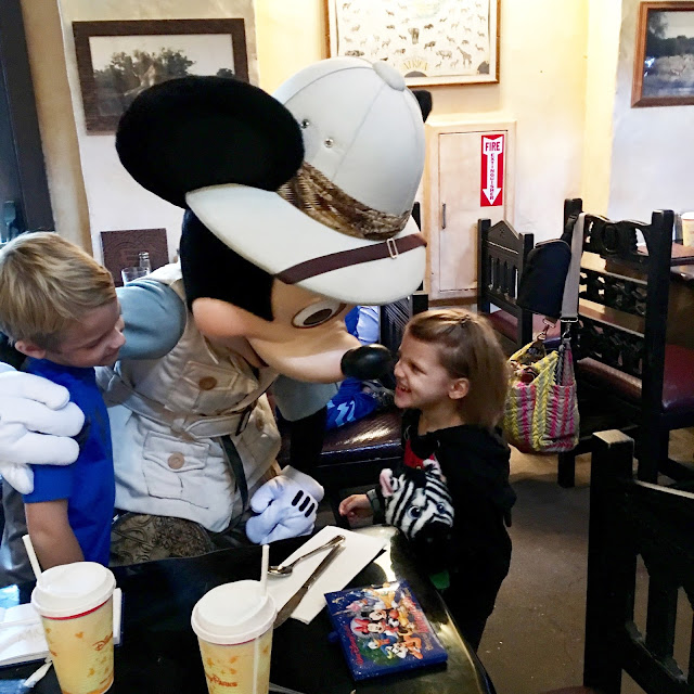 // Our character lunch/dinner was at 3pm. None of us were all that hungry, but we didn’t want to miss seeing this kids meet all the characters. Truth: The Tusker House is way overpriced for their less than stellar buffet, but having the characters come to your table and seeing your kids faces is totally worth the jacked up price 🙂 Much to our surprise, Carson still thinks all the characters are real, so that made the experience that much more fun.