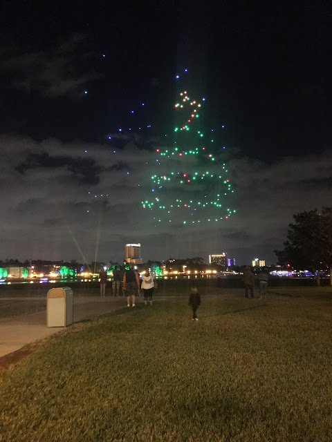 As we were walking out we caught the holiday drone light show. It was so cool, and the kids loved it.
