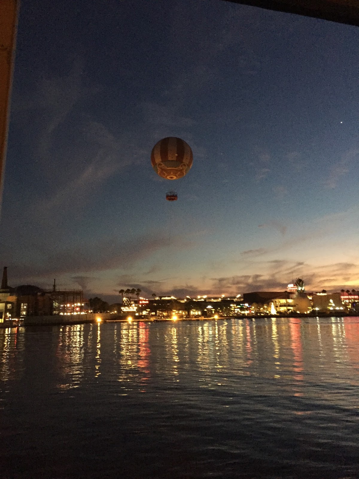 // After a long day at the park we decided to head back to our hotel and take the Ferry Boat to Disney Springs for dinner. This is another one of the cool things about the Port Orleans hotels. They are one of only three hotels that offer the ferry ride to Disney Springs, and trust me, it’s a lot better than taking your car or the bus 🙂