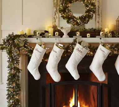 My stockings are from Ballard Design and I love them so much! I actually don't have a tree skirt for the main tree because they always get covered up by gifts. I do have a Mickey skirt for the Disney tree, a red and green felt skirt for the kids tree, and a pink furry skirt for the girly tree.