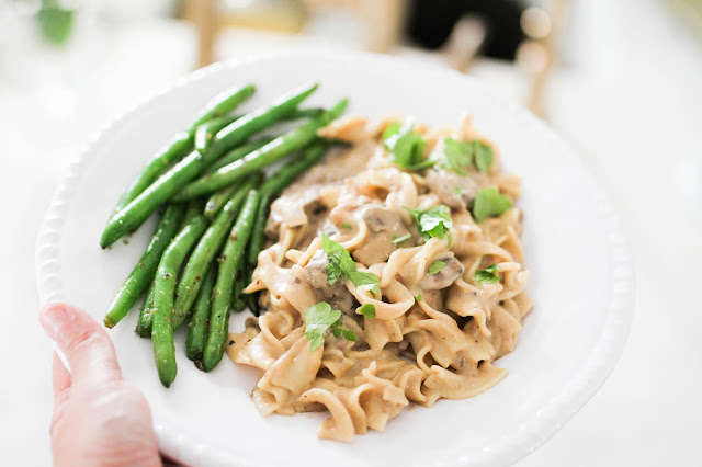 Hello loves and happy Tuesday! So, today’s recipe isn’t exactly healthy, but it was delicious so I had to share it with you guys. Growing up, Todd’s favorite dish was beef stroganoff, and since it was his birthday I decided to surprise him by making it. I’ve never been a big fan of beef stroganoff, but that’s probably because we always ate the good ol’ Hamburger Helper kind and it always looked so disgusting to me. And for the record, I am not knocking Hamburger Helper because I straight up loved the cheeseburger macaroni…ha!